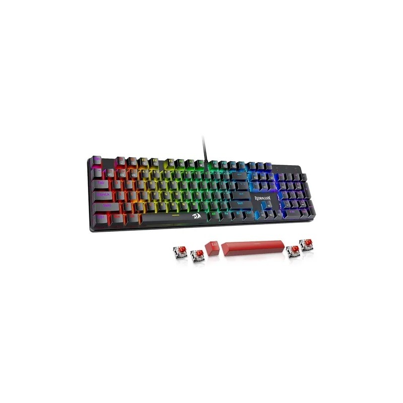 Interruptor rojo lineal intercambiable: nuestro teclado para juegos K671 cuenta con interruptor rojo, que requiere menos fuerza para presionar y las teclas se sienten más suaves y fáciles de usar. Es mejor para rpgs y mmo. Recibirás 4 interruptores de repuesto y dos teclas rojas como regalo para hacer tu propio teclado